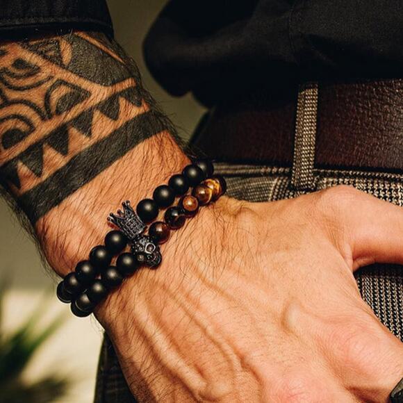 2 pieces of men's bracelets made from natural mineral stones. The mineral stones have a beneficial effect on their wearer.