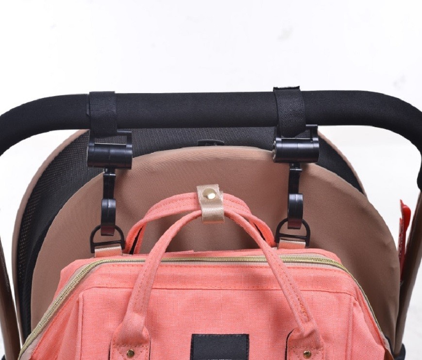 Practical hooks for hanging a changing bag, backpack or organiser on a stroller.