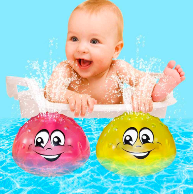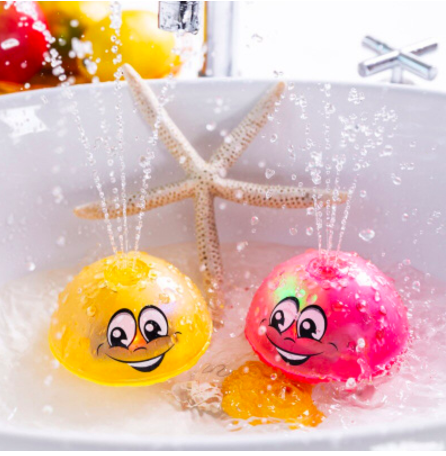 The toy glows and sprays water when in water