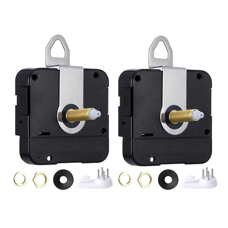 Package Contents: 2x clock movement, 2x rubber gasket, 2x washer, 2x nut, 2x metal hook, 2x mounting hook