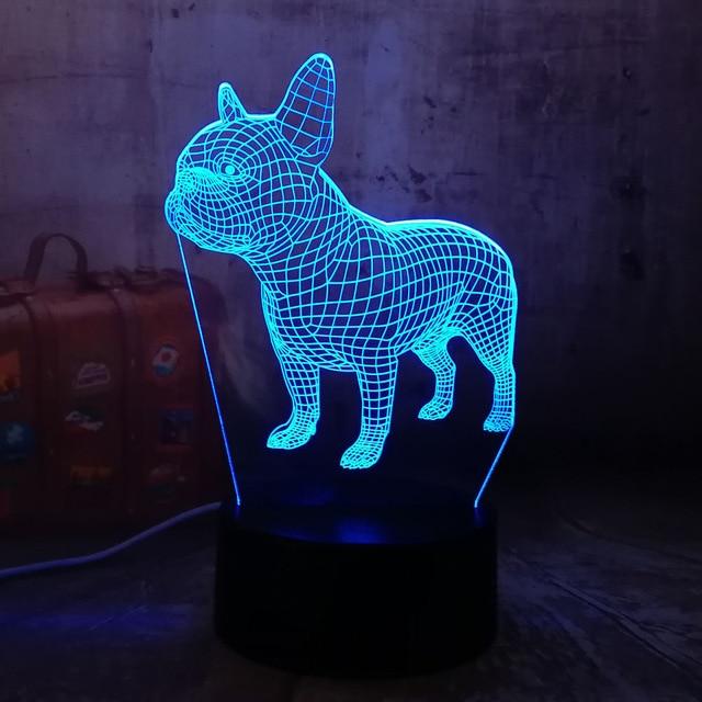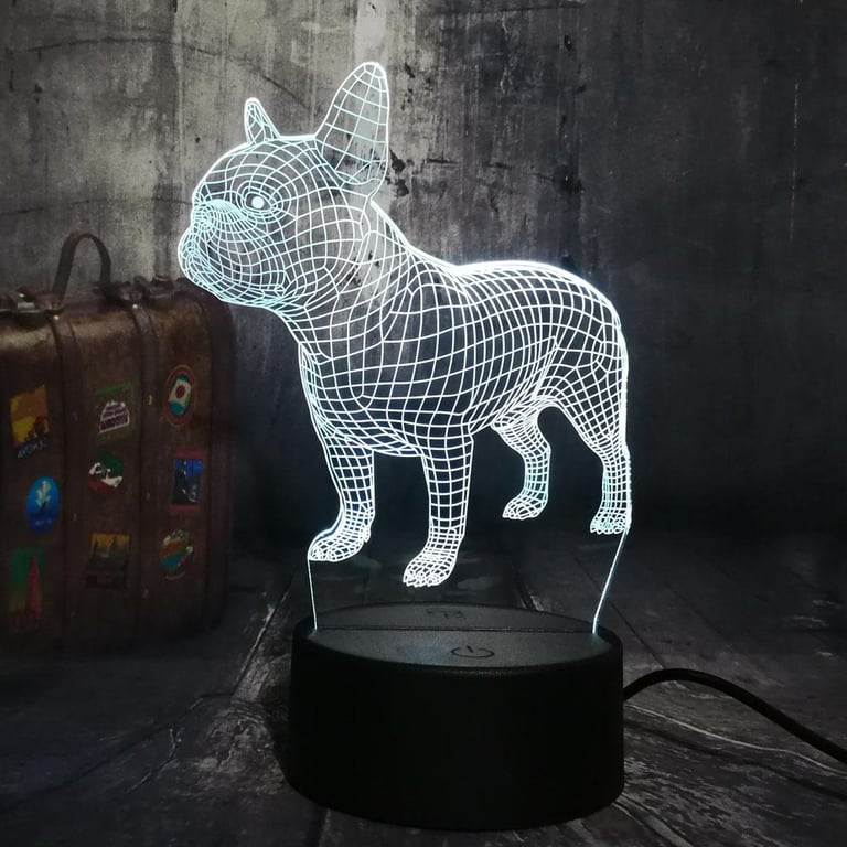 Cool 3D lamp in the shape of a bulldog. Colour-changing. A remote control can also be included with the lamp. Switch One 3 Color: They have only three colours: red, blue and purple. The switch cable length is 1 m. Package includes: 1x acrylic plate 1x switch button Touch One 7 Color: They have 7 colours (red, green, blue, yellow, cyan, purple, white). You can set a colour transition. Touch button: Press once to light a colour, press again to turn it off. Can be placed in the bedroom, children's room, living room, bar, shop, café, restaurant, etc. as a decorative light. Package includes: 1x acrylic plate 1x ABS base 1x USB cable Controller 7 Color: They have 7 colours (red, green, blue, yellow, cyan, purple, white). You can set a colour transition. Touch button: Press once to light a colour, press again to turn it off. Press three times to light a different colour, or you can change the mode using the remote control. Package includes: 1x acrylic plate 1x ABS base 1x USB cable 1x remote control Tags: Home accessories, Children's room