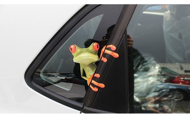 Funny 3D car sticker featuring various frogs.