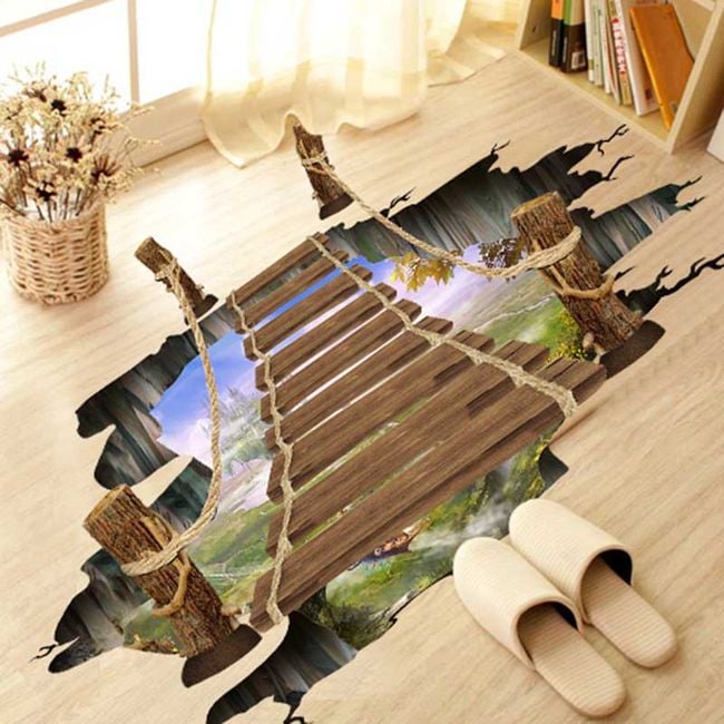Create an original home and impress your guests at the same time! The sticker adheres perfectly to the floor, creating the illusion that you have a bridge over a chasm. It is perfect for the hallway, where your guests will feel as if they are crossing a bridge. The sticker is easy to apply and remove. Apply to a smooth, dry, and clean surface.
