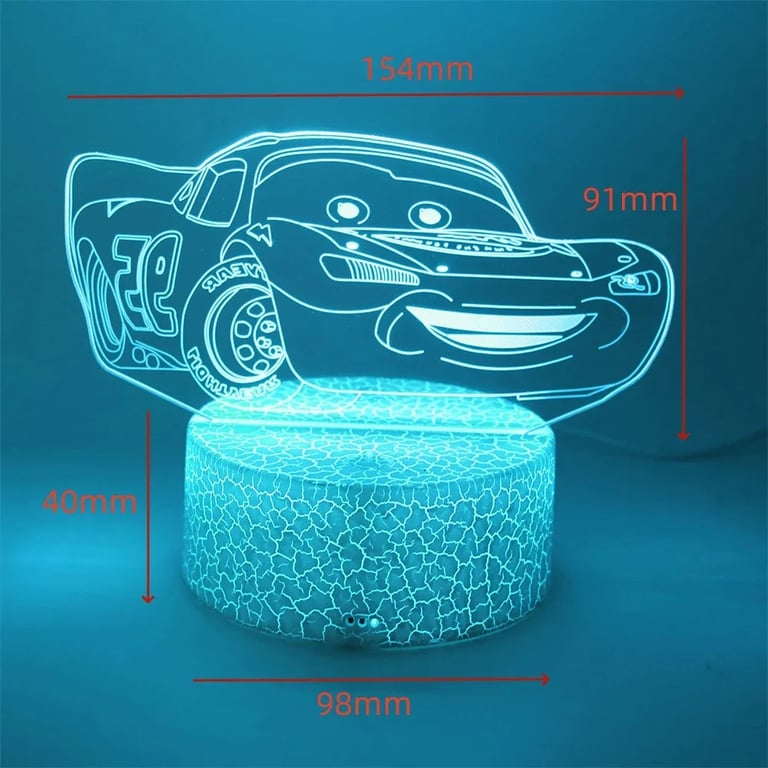 Yes, this LED night light features a motif of a car from the Cars film. Thanks to the laser-engraved acrylic panel featuring the main character, it creates a 3D lighting effect in several colour modes, and it's a great decoration for any fan of the film.