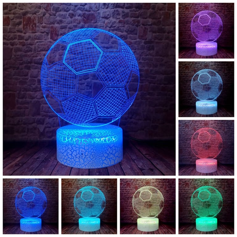 A fantastic desk lamp in the shape of a football, perfect for any football player or fan. The lamp creates a perfect 3D illusion, making it look as if the ball is floating right in front of you. In reality, the top of the lamp is flat and illuminated, which creates this illusion.