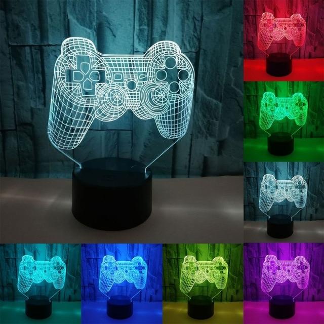 Night lamp for bedside table with 3D LED projector. The lamp allows you to change colours using a button.
