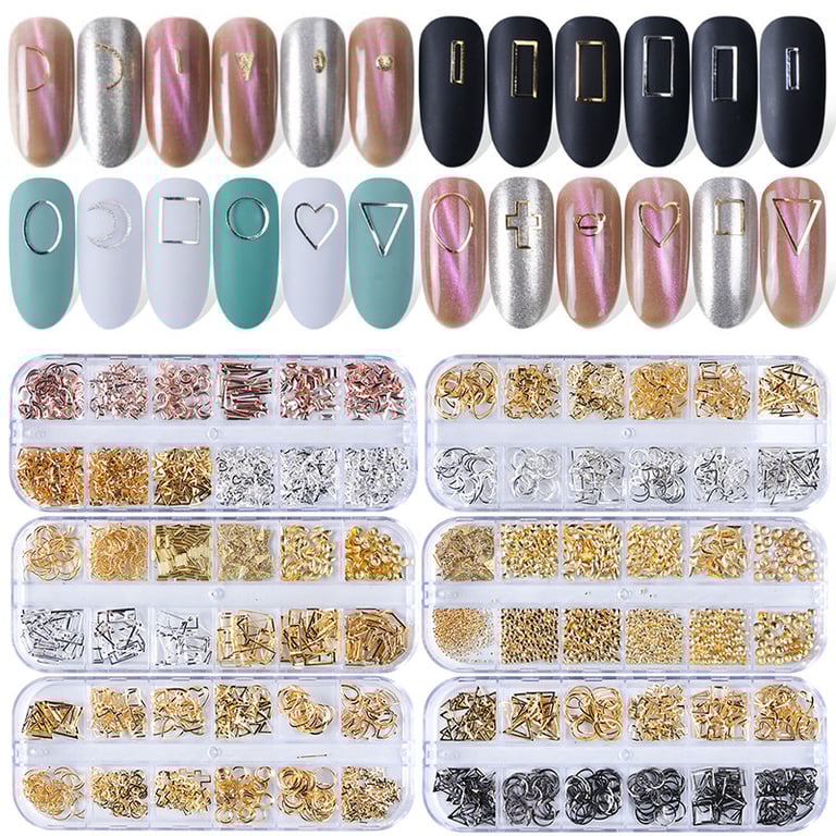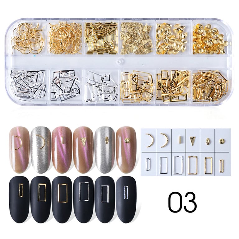 Decorate your nails with metallic 3D elements. You can buy multiple sets and combine the designs. Create masterpieces of mosaics on all your nails.