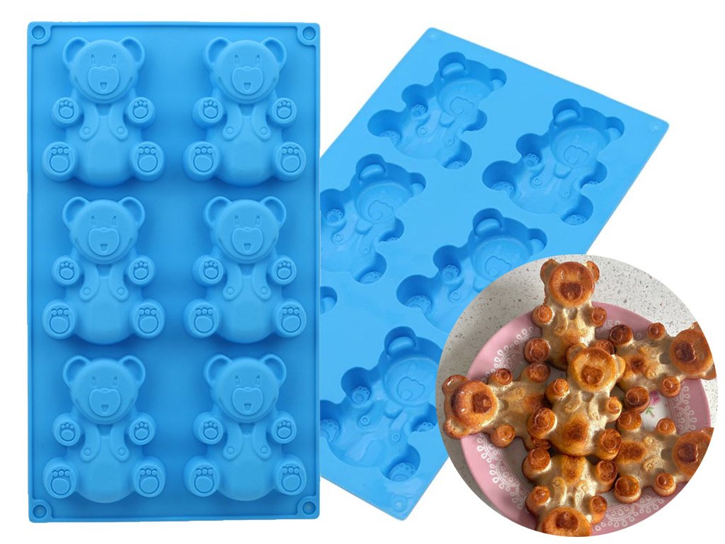 Original silicone mould for 6 bears. It is suitable for baking or also for preparing gummy or chocolate bears. Let your imagination run wild in the kitchen with your children! The mould is made of non-stick silicone that withstands temperatures up to 230°C.
