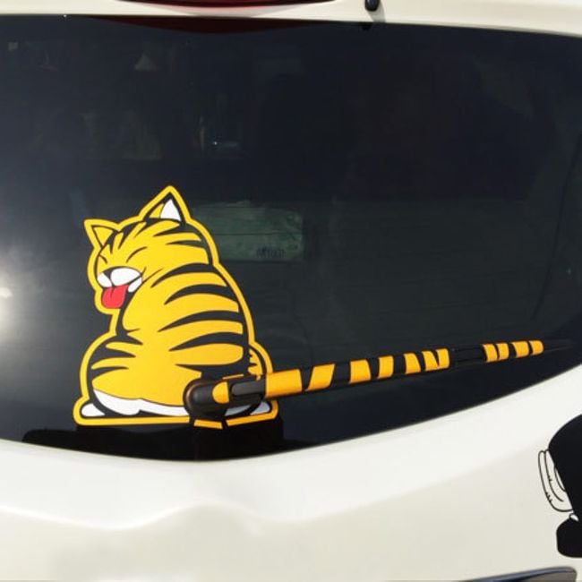 A funny decoration for your car. With its help, your rear wiper will come to life and entertain the drivers behind you. The sticker consists of multiple parts – the body of a cat, a cat's tail, and cat paw prints.