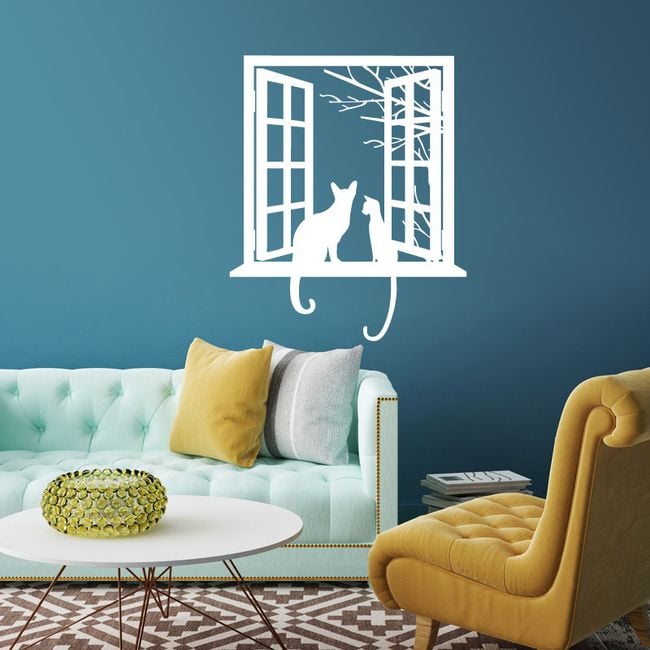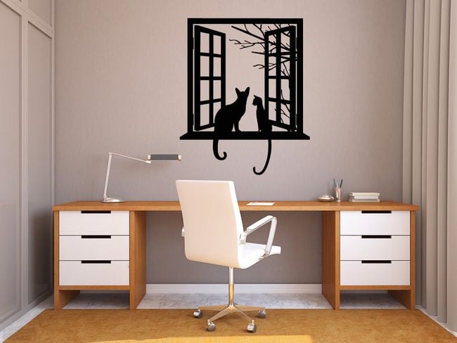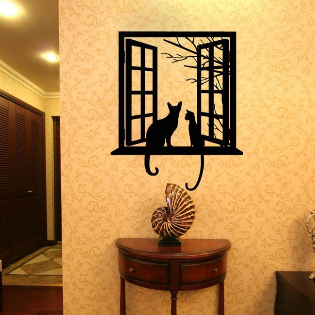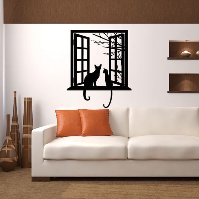 The sticker depicts an open window with two kittens sitting inside. Add a different dimension to your home.