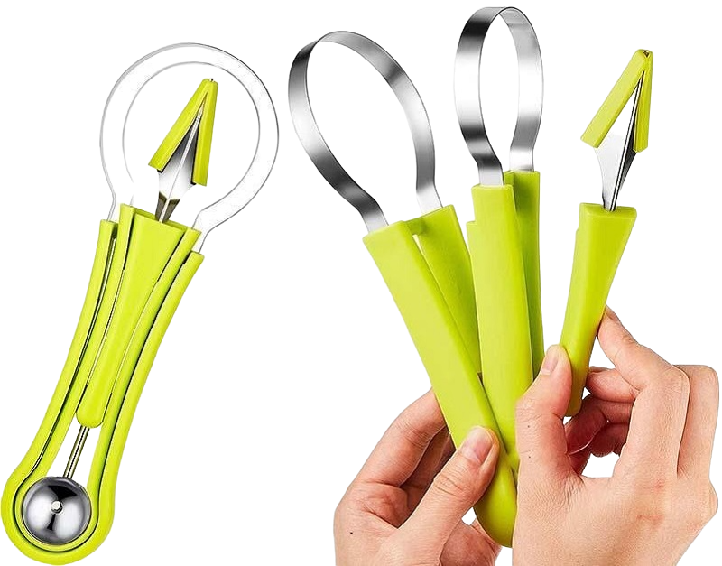 A 4 in 1 cutter that includes a corer, slicer, and knife. You can create perfectly shaped balls and creatively carve pumpkins with it. You can also use it on kiwis, apples, pitaya, and other types of fruit.