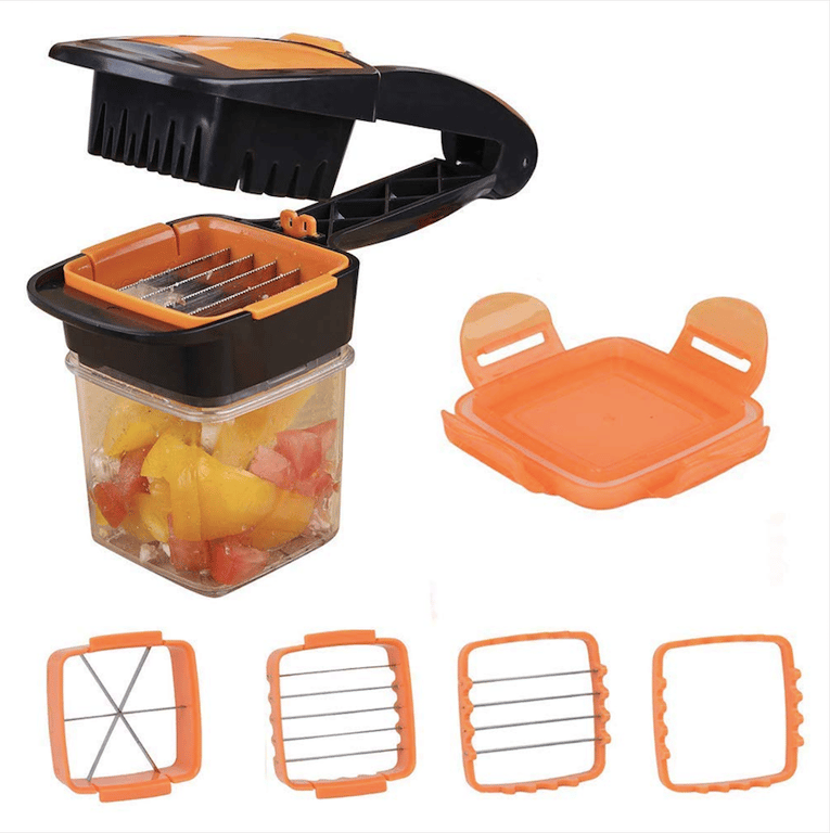 Suitable for fruit/vegetables with 3 interchangeable attachments for different types of slicing