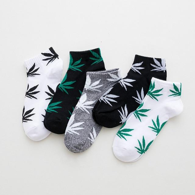 Gift your dad, boyfriend or friend this pack of 5 pairs of men's ankle socks in a modern style with vibrant colours featuring marijuana leaves.