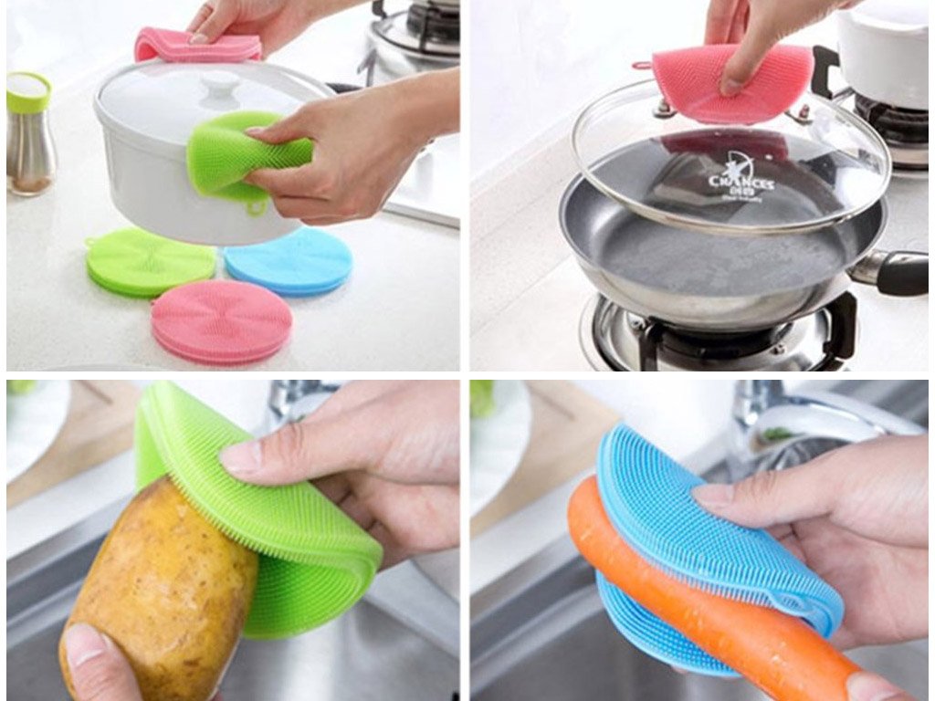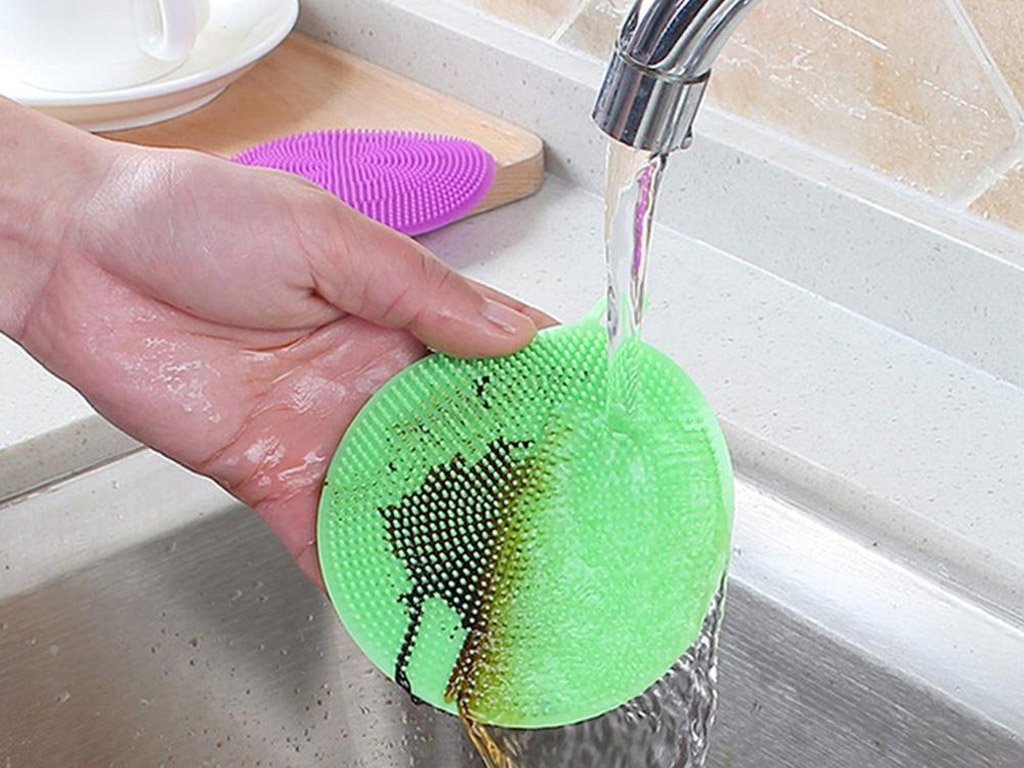 Universal washing and cleaning sponges with silicone bristles wipe away food residues from dishes, and you won't need to throw them away soon like a regular sponge. Just wash them, and they will last a long time! They can also serve as pot holders or help you easily open jars.
