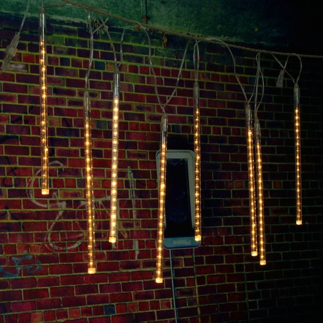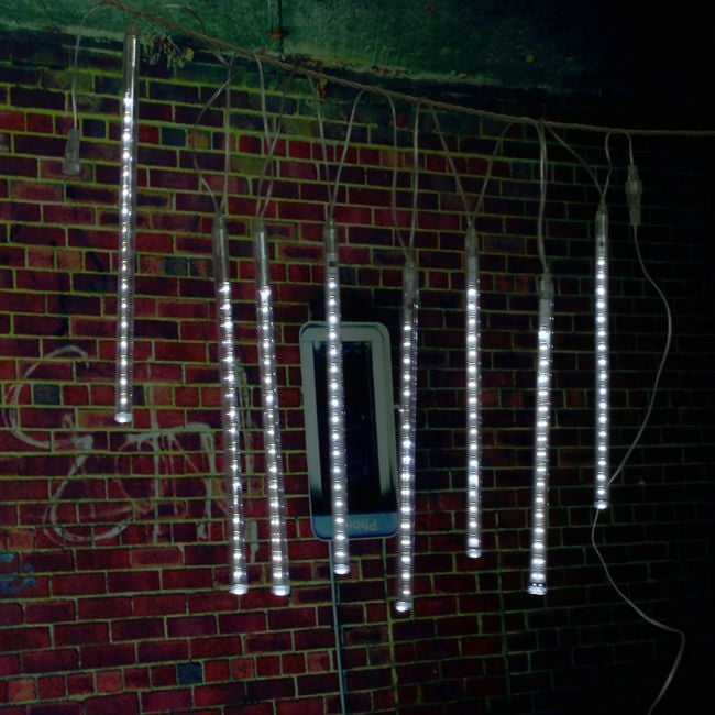 A beautiful decoration for your garden, or for windows at Christmas, or as a home accessory. These tubes are charged using a solar panel included in the package. Just turn it on and let the tubes charge; the result will be visible in the evening. Available in several colours – blue, rainbow, yellow, and white. All parameters are included below in the descriptions.