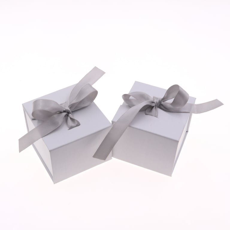 • The darker and lighter grey shades of this box are complemented by the ribbon for tying and closing the box.