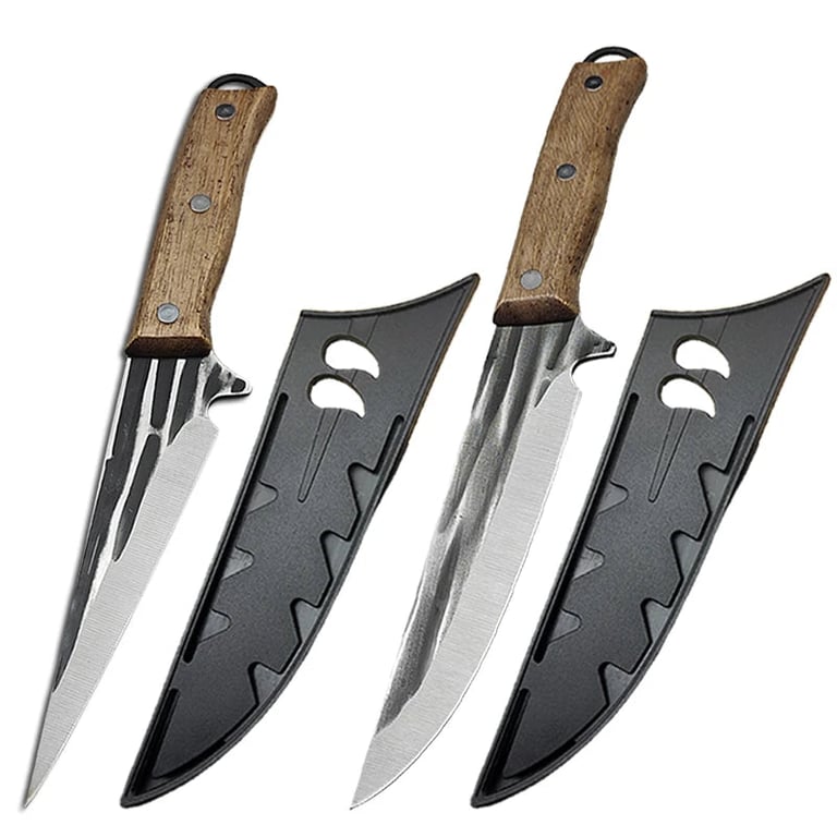 Each knife comes with a plastic sheath that protects the blade during storage and makes safe transportation easier. For those who want a complete set, a pair of both knives is also available.