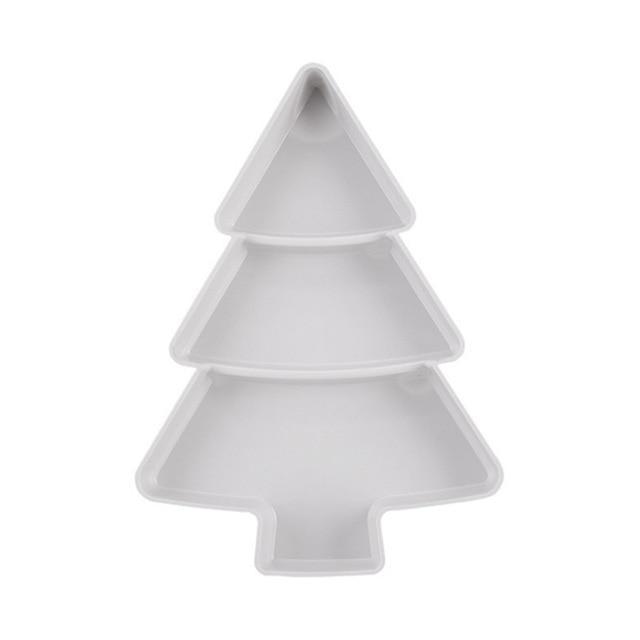 Decorative Christmas bowl in the shape of a Christmas tree divided into three sections.