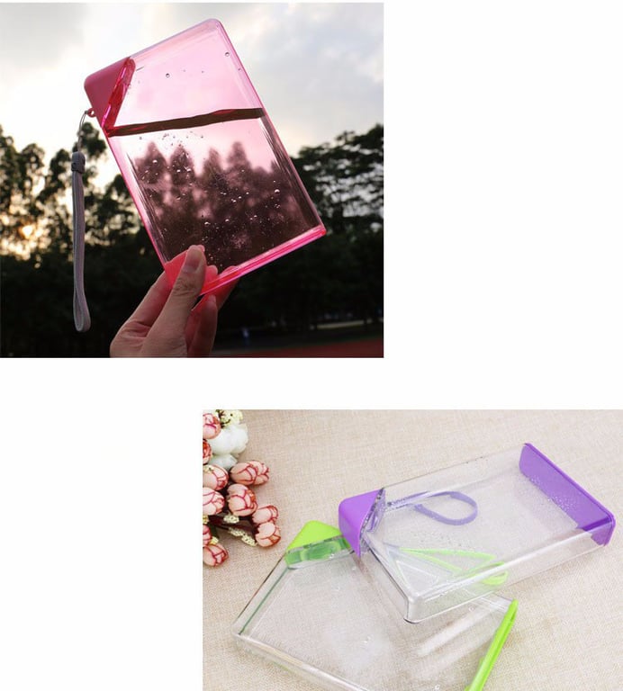 Compact bottle for handbags in A5 format.