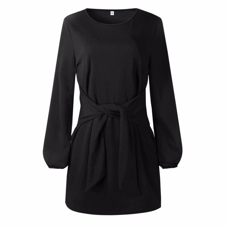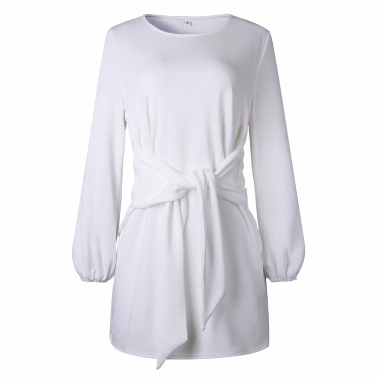 Unusual women's dress in an elegant cut. Uniquely designed tie at the waist.