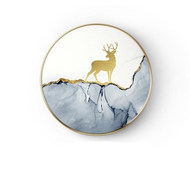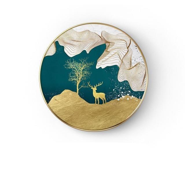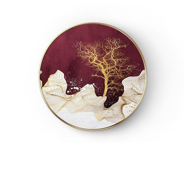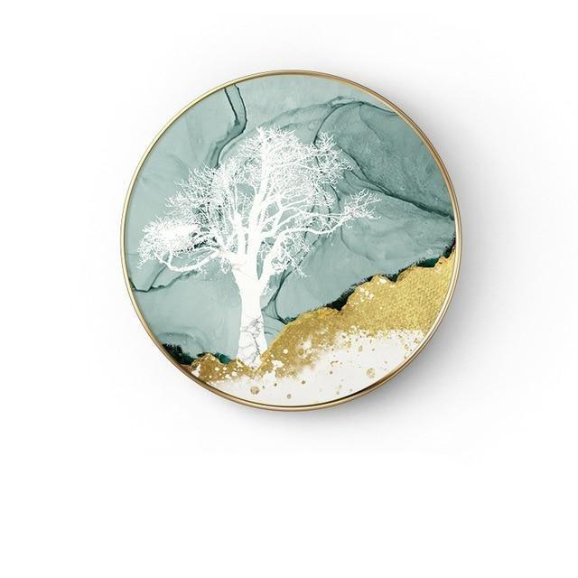 Abstract painting in the shape of a circle in various styles. The painting does not include a frame.