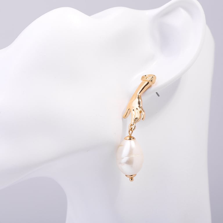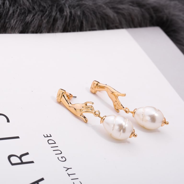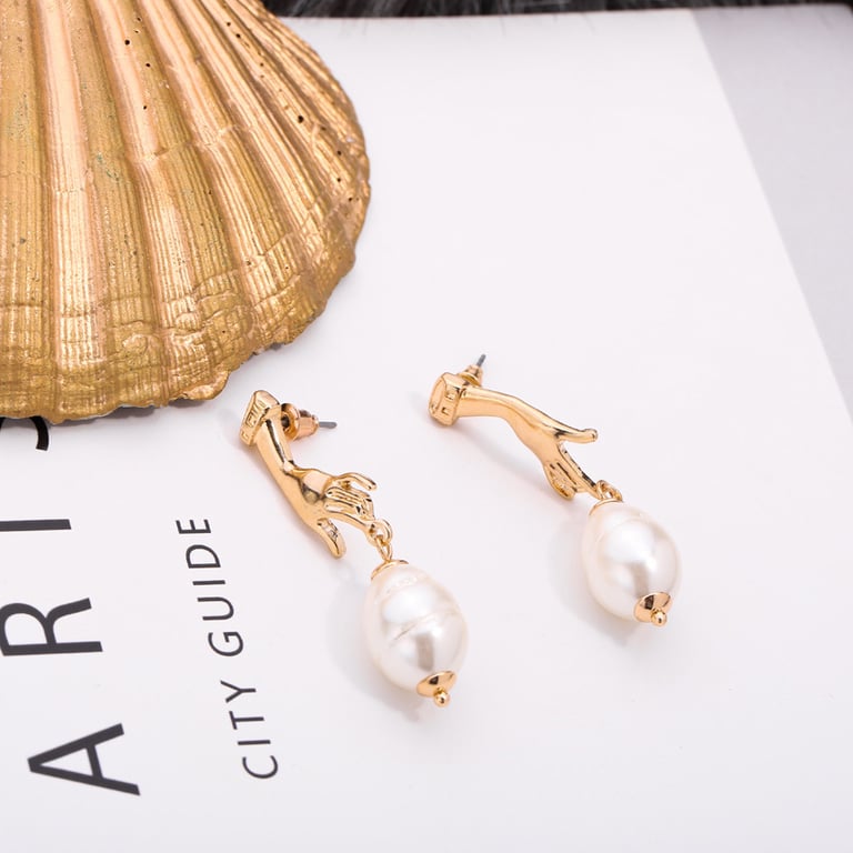 Abstract Pearl Drop Earrings with Gold