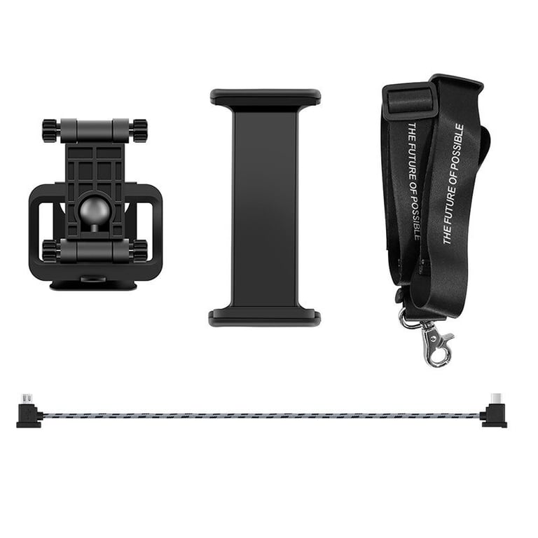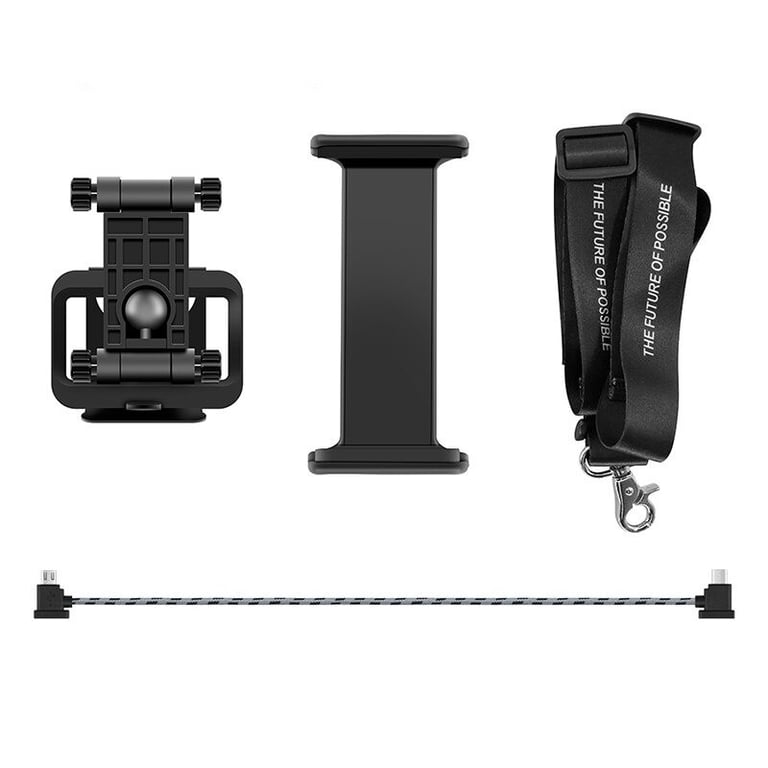 Package contents: 1x phone holder, 1x phone holder jaws, 1x neck strap, 1x 30 cm connecting cable