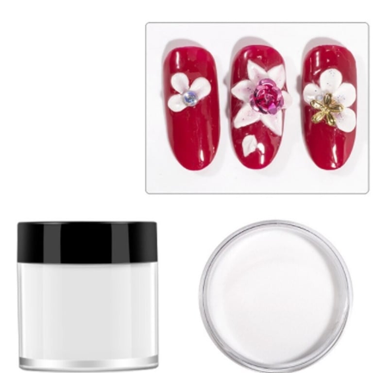 Fast-drying acrylic powder. Easy to apply. Suitable for natural or artificial nails. Used for nail decoration.