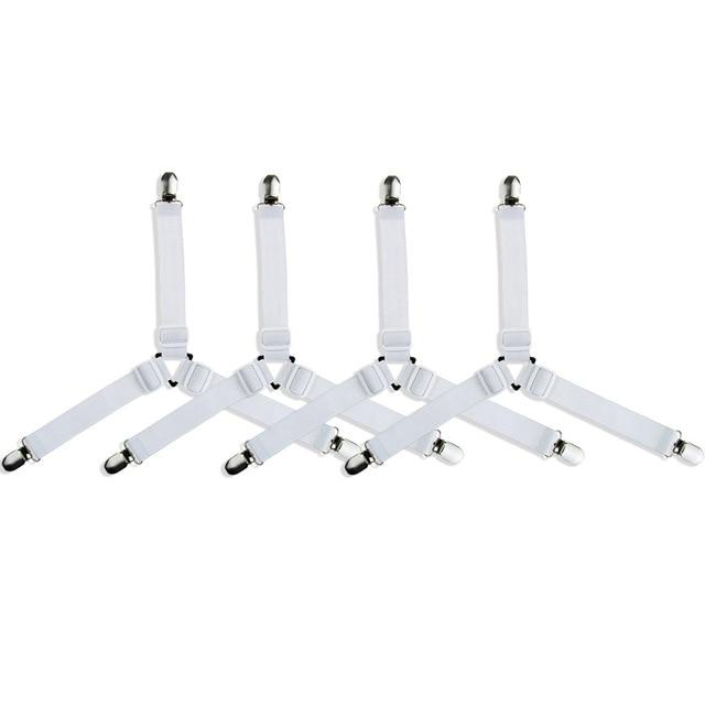Adjustable clips for bed sheets. The package contains 4 pieces. Available in multiple colours.