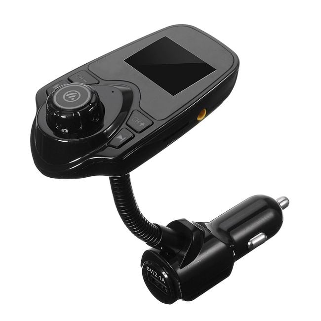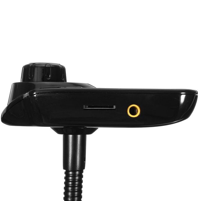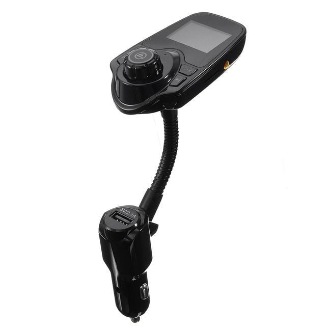 Multifunctional FM/MP3 transmitter for car cigarette lighter with a flexible neck, supporting a wide range of functions.