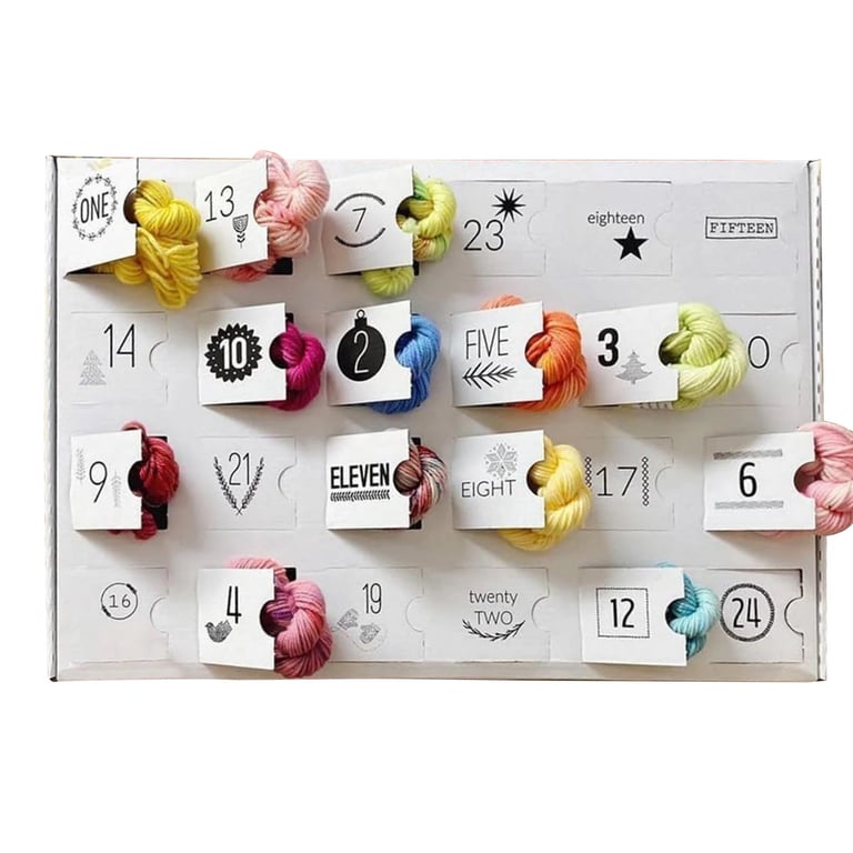 An Advent calendar for knitting enthusiasts offers a daily surprise in December in the form of beautifully coloured cotton yarn. In the package you will find 24 mini skeins of soft and multicoloured yarn, ideal for various DIY or handmade projects. The box's elegant design will delight all creative minds and make the wait for Christmas more enjoyable.