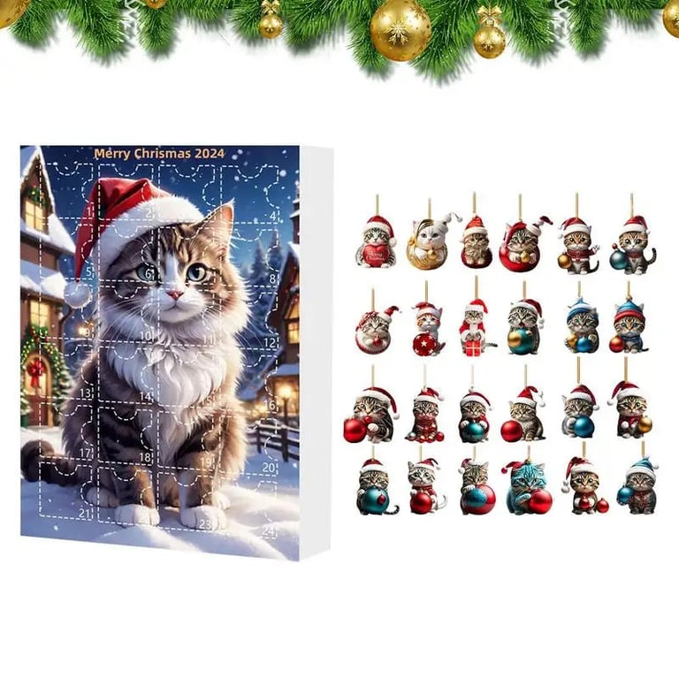 Advent calendar with Christmas tree decorations – cat. Suitable for children aged 4 and over.