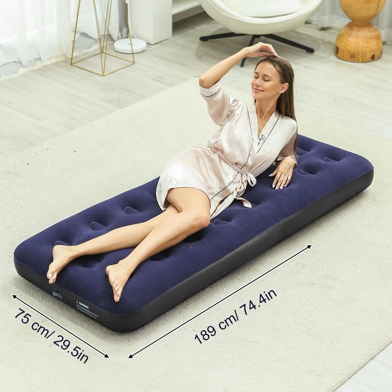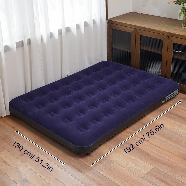 A comfortable inflatable bed ideal for home use as well as a practical solution for guests. Thanks to its high-quality construction and a height of 22 cm, it offers a comfortable sleep comparable to a standard bed. The velour surface feels luxurious, prevents the sheet from slipping and provides a pleasant feel to the touch. The bed inflates quickly with a pump and after deflating it can be stored easily.