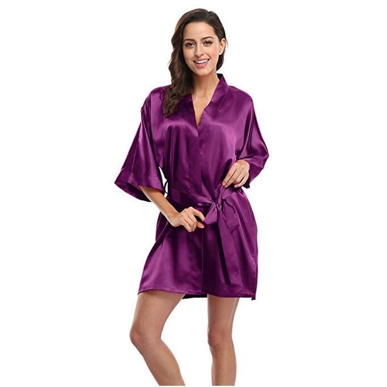 Women's short robe in elegant satin design. Smooth shiny material. Pleasant to the body. Wrap-around style with a tie at the waist. Available in many colour options.