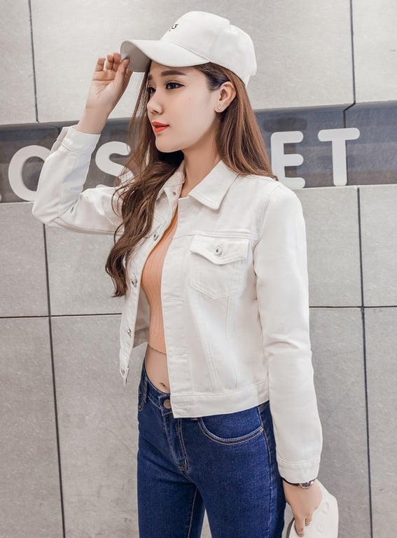 The jacket is suitable for spring or autumn and fastens with a zip.