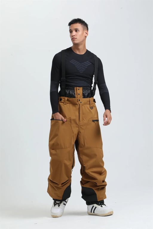 AlpineGlare™ Men's snowboard and ski trousers These men's snowboard and ski trousers combine durability, performance and comfort. They are made from high-quality material with a water-repellent and windproof finish, keeping you dry even on a demanding day on the slopes. The trousers feature adjustable braces, a higher waistband for better insulation, and reinforced leg ends to resist wear from ski boots or snowboard boots. With their relaxed cut, they offer maximum freedom of movement. Features: - Water-repellent and windproof material - Warm inner lining for winter comfort - Adjustable braces and higher waistband - Reinforced leg ends to resist wear - Practical zip pockets - Relaxed fit for maximum comfort when moving - Ideal for snowboarding, skiing and other winter sports Size chart (cm) Size | Leg length | Waist | Hip | Thigh width XS | 107.5 cm | 88 cm | 92 cm | 64 cm S | 110 cm | 92 cm | 96 cm | 70 cm M | 112.5 cm | 96 cm | 104 cm | 74 cm L | 115 cm | 100 cm| 112 cm | 78 cm XL | 117.5 cm | 104 cm| 120 cm | 82 cm XXL| 120 cm | 108 cm| 128 cm | 86 cm