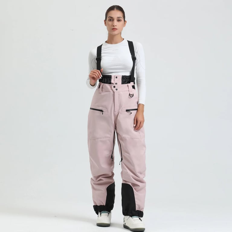 The pants feature adjustable braces, a higher waist for better insulation, and reinforced ends to resist wear from ski boots or snowboard boots. Practical zip pockets provide ample storage space for small items.