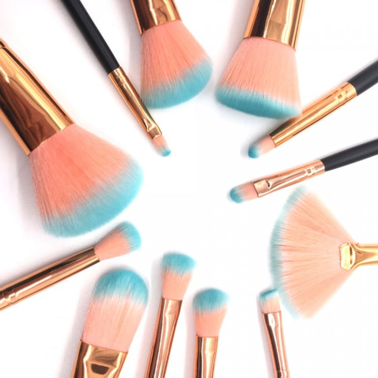 Create the perfect make-up with the cosmetic brush set. The set includes a total of twelve brushes.