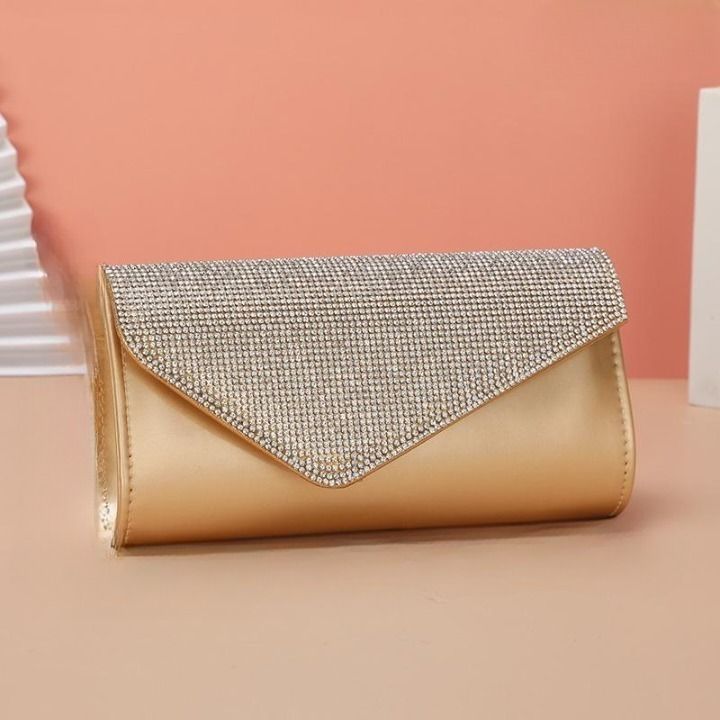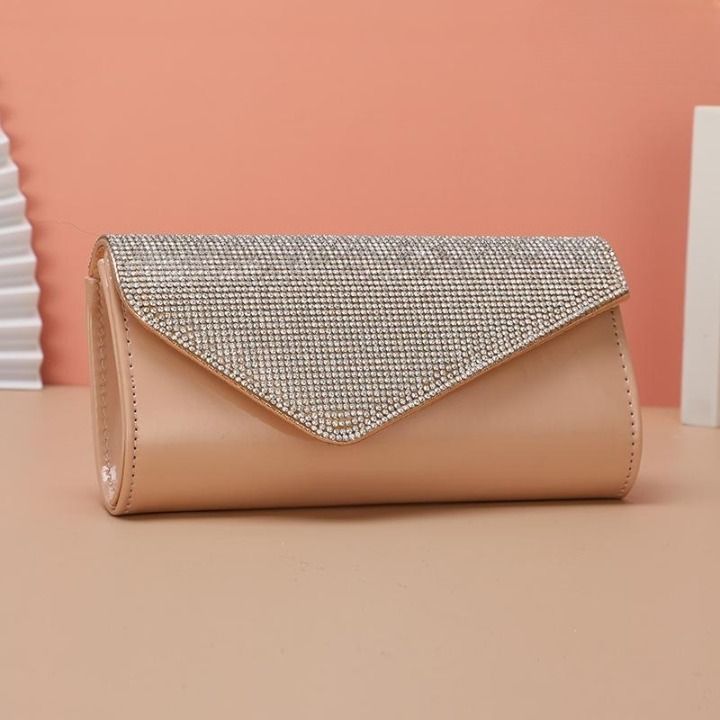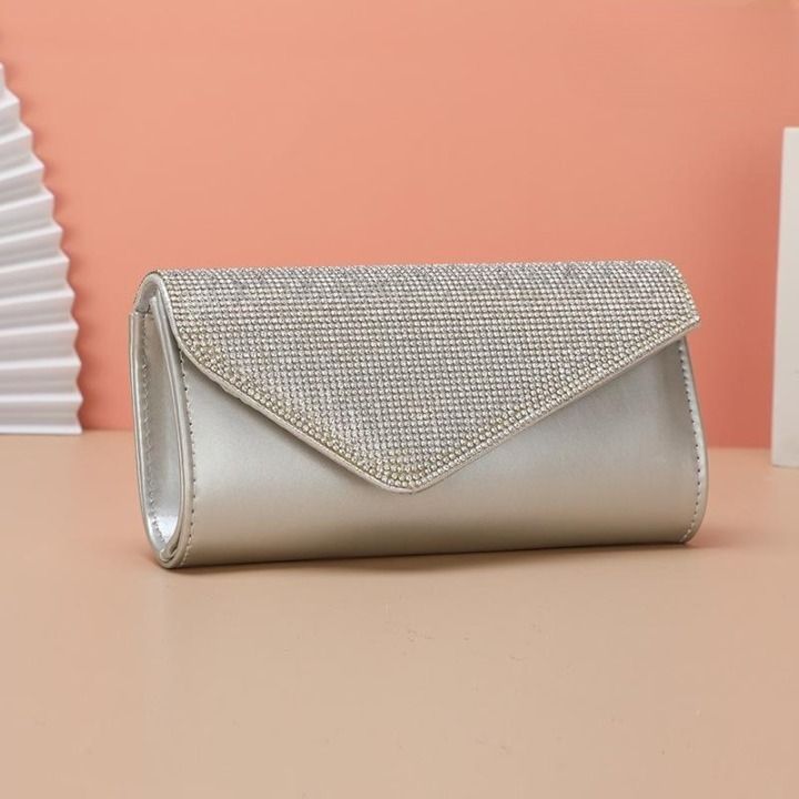 Modern elegant evening clutch adorned with rhinestones.