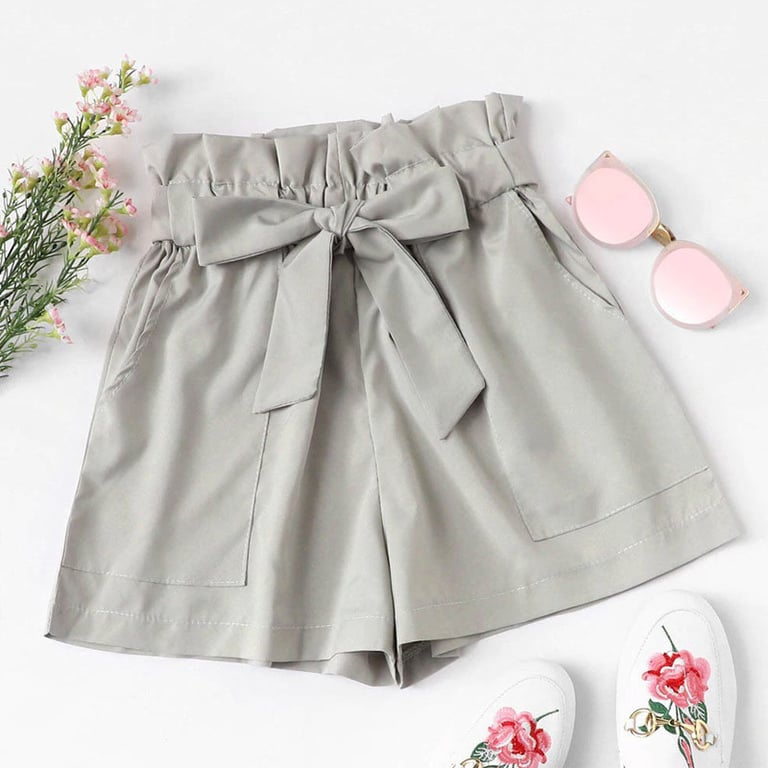 Women's loose-fitting shorts with a high waist. Tie belt at the waist. Side pockets. Available in multiple colour options.