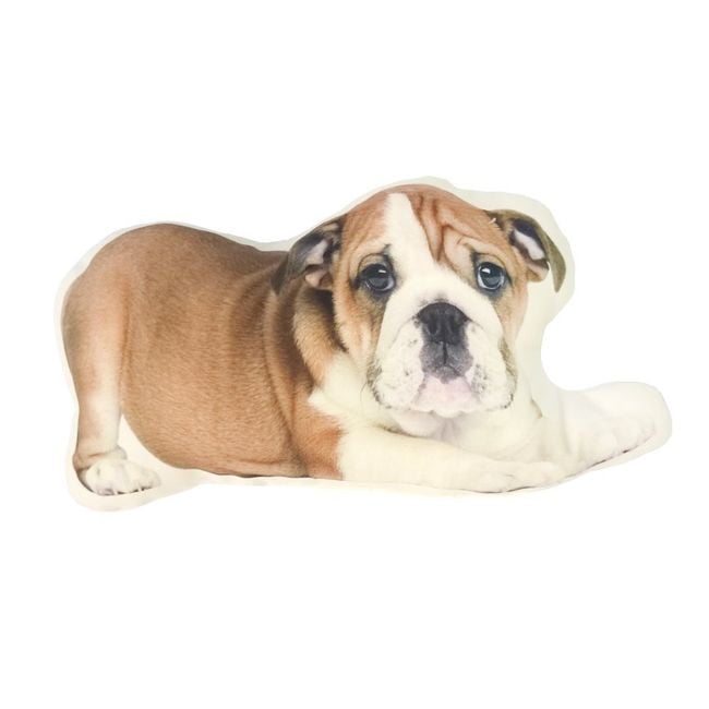The cushion looks like a bulldog, it is very detailed and suitable as a stylish home accessory.