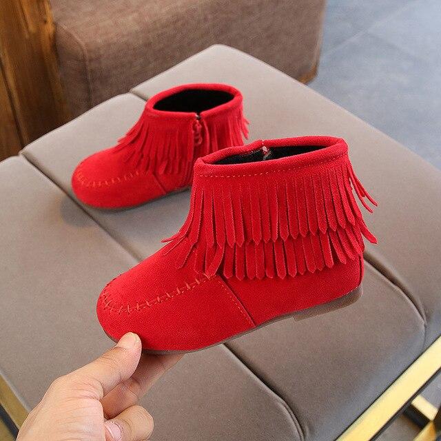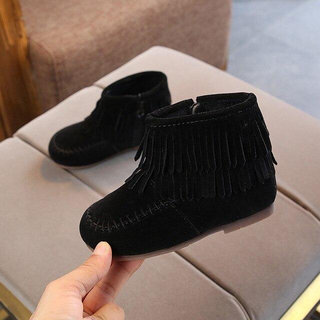 Ankle autumn boots with tassels for girls.