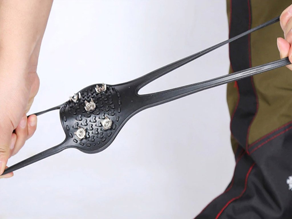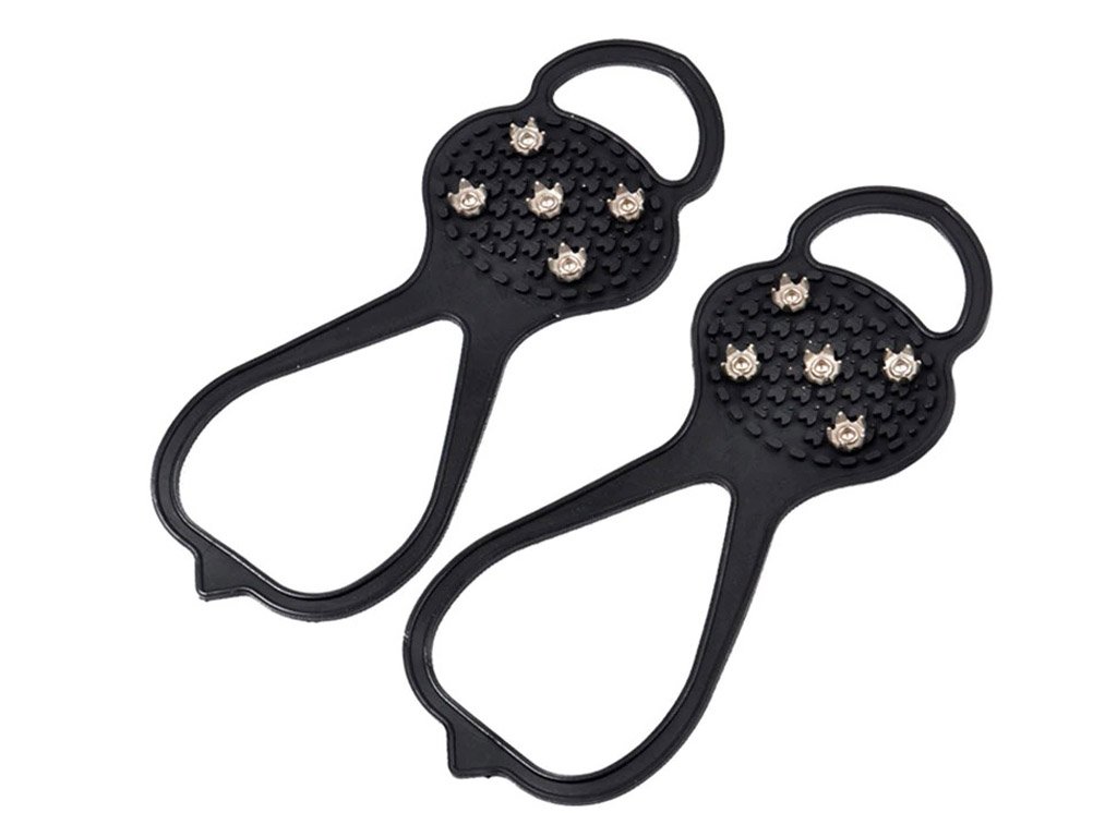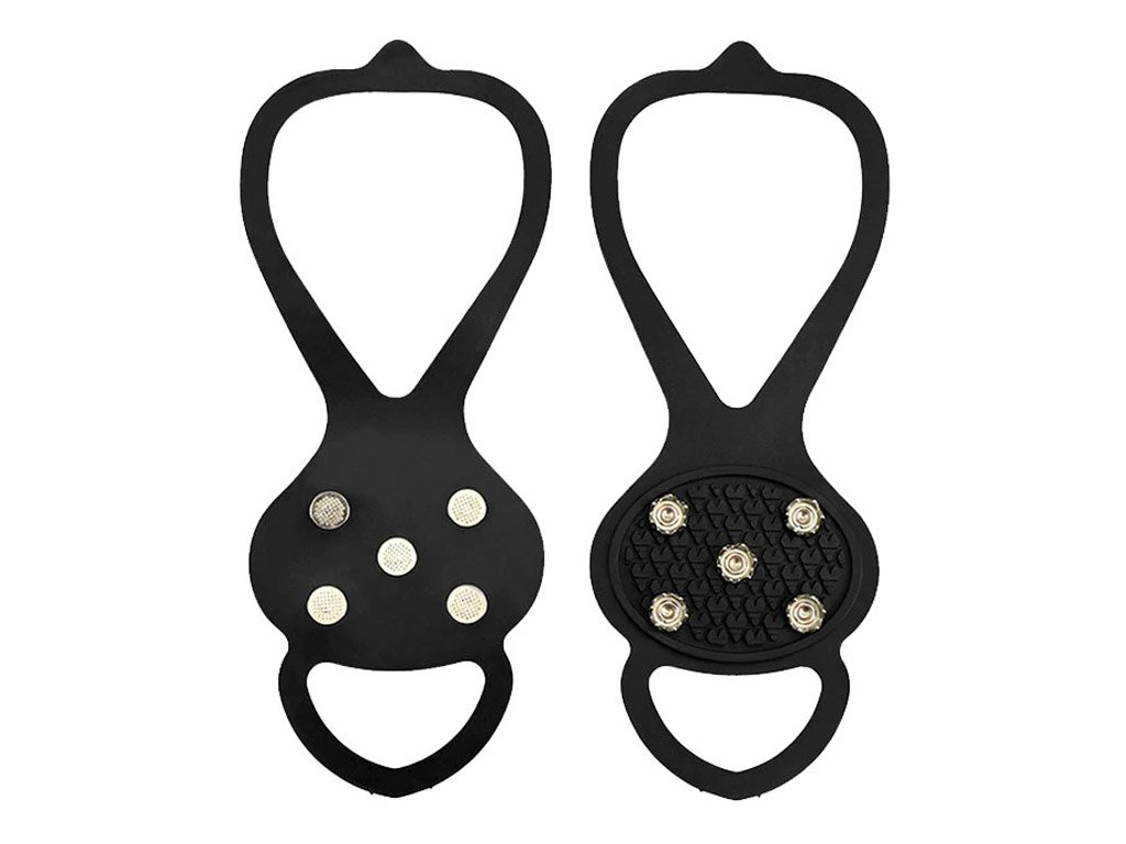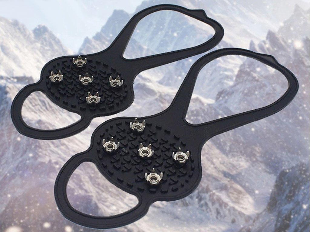 Simple anti-slip shoe covers. You can carry these crampons in your pocket and use them anytime in winter when you encounter ice or a slippery pavement. The flexible, stretchy material allows for easy and quick application.