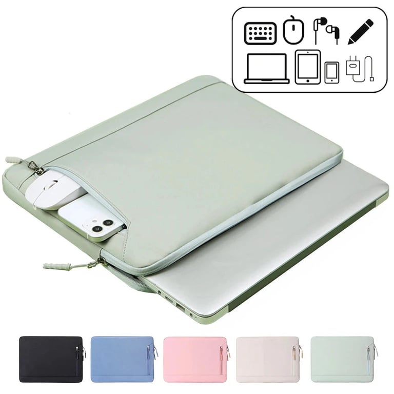 The laptop/tablet case is water-resistant, soft, padded, ideal for laptops sized 13.3", 14.6" and 15.6" (MacBook, Lenovo, HP, Dell, etc.). Elegant appearance and understated colours – green, pink, blue, black, grey, beige; inside a soft protective lining. Large pocket for the laptop and a smaller pocket for accessories (mouse, phone, charger), zip around the edge, the entire surface is easy to clean and pleasant to touch.