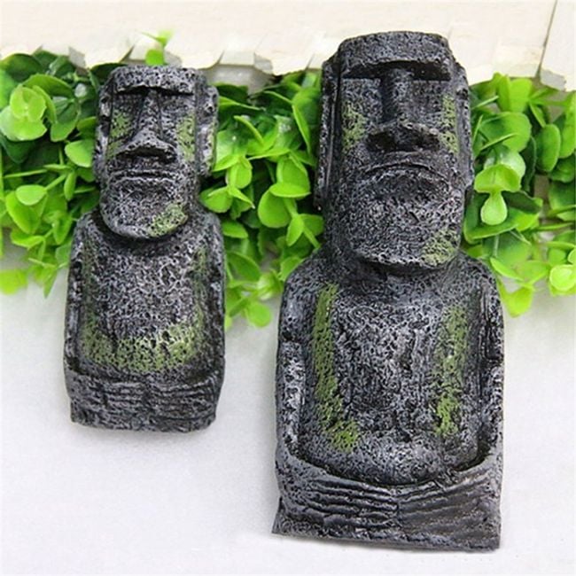 Add some variety to your fish's home with decorative figurines from Easter Island, giving them a sense of their natural environment. This will greatly enhance the overall appearance of the aquarium. The package includes two size variants.