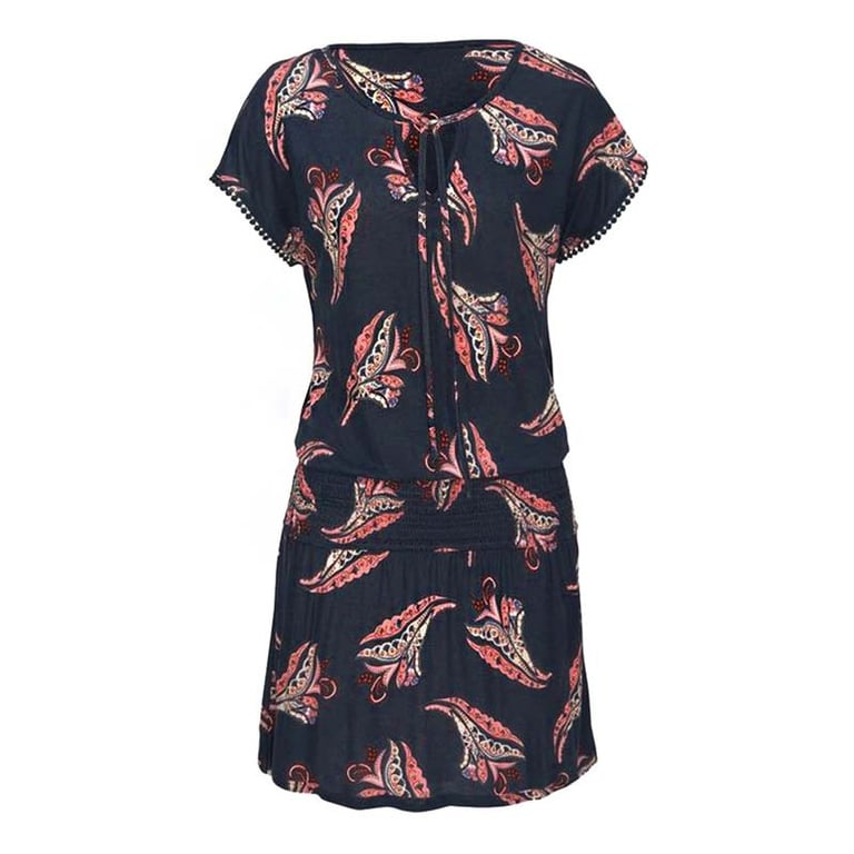 Women's short dress, perfect for summer. The delicate embellishment will surely suit you.