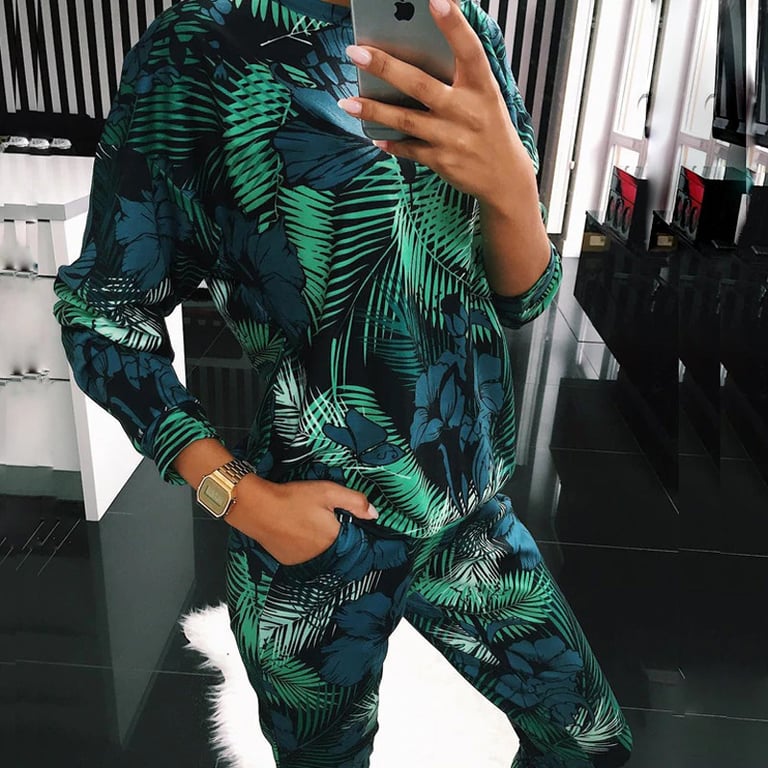 Arizora hoodie and sweatpants set – green plants