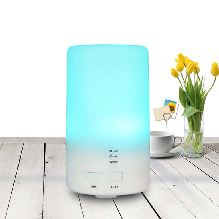 The aromatic diffuser in a practical smaller design with changing colours will pleasantly scent your home. 5 LED colour options. Touch switch button – you can set the timer for 30/60/120/180 minutes, and by pressing the “LIGHT” button for 1 second, you activate the backlighting, which changes automatically.