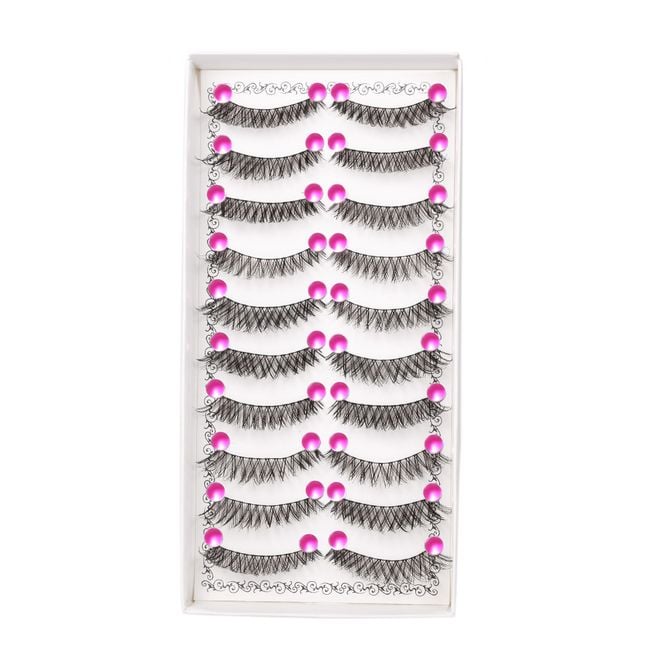 The box contains 10 pairs of artificial eyelashes made from synthetic fibre.