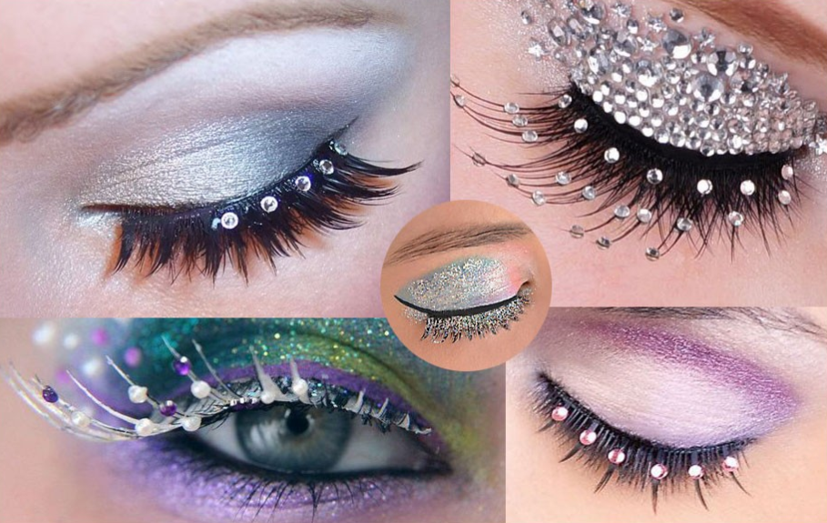 Artificial eyelashes decorated with gemstones